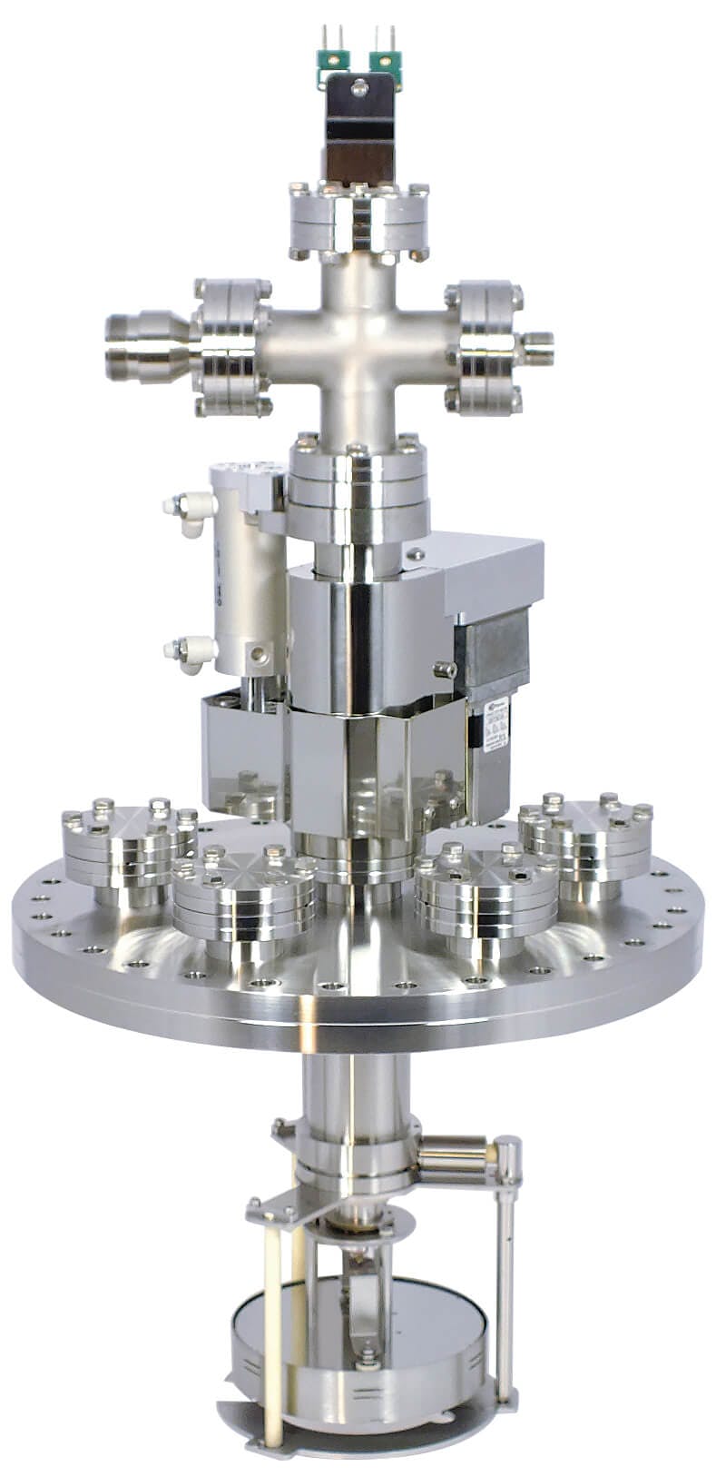 The EpiCentre deposition stages are engineered for a wide range of deposition applications, including MBE, sputtering, CVD, substrate annealing, degassing, and other high-temperature material modifications. The stages can be mounted in any orientation, making them adaptable to custom chamber designs and specific application configurations, enhancing their utility across different industries.